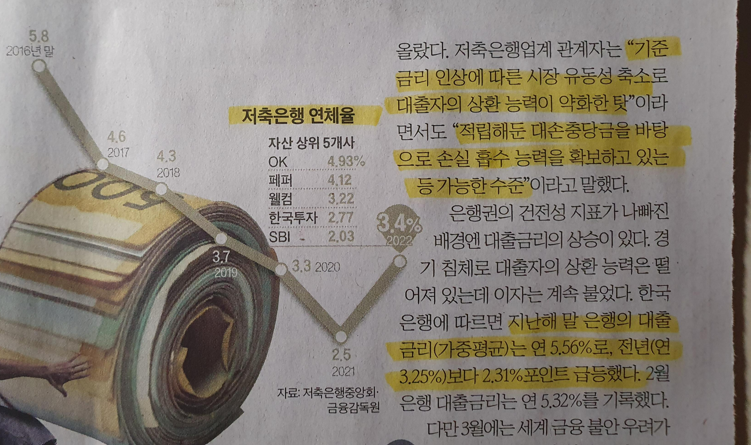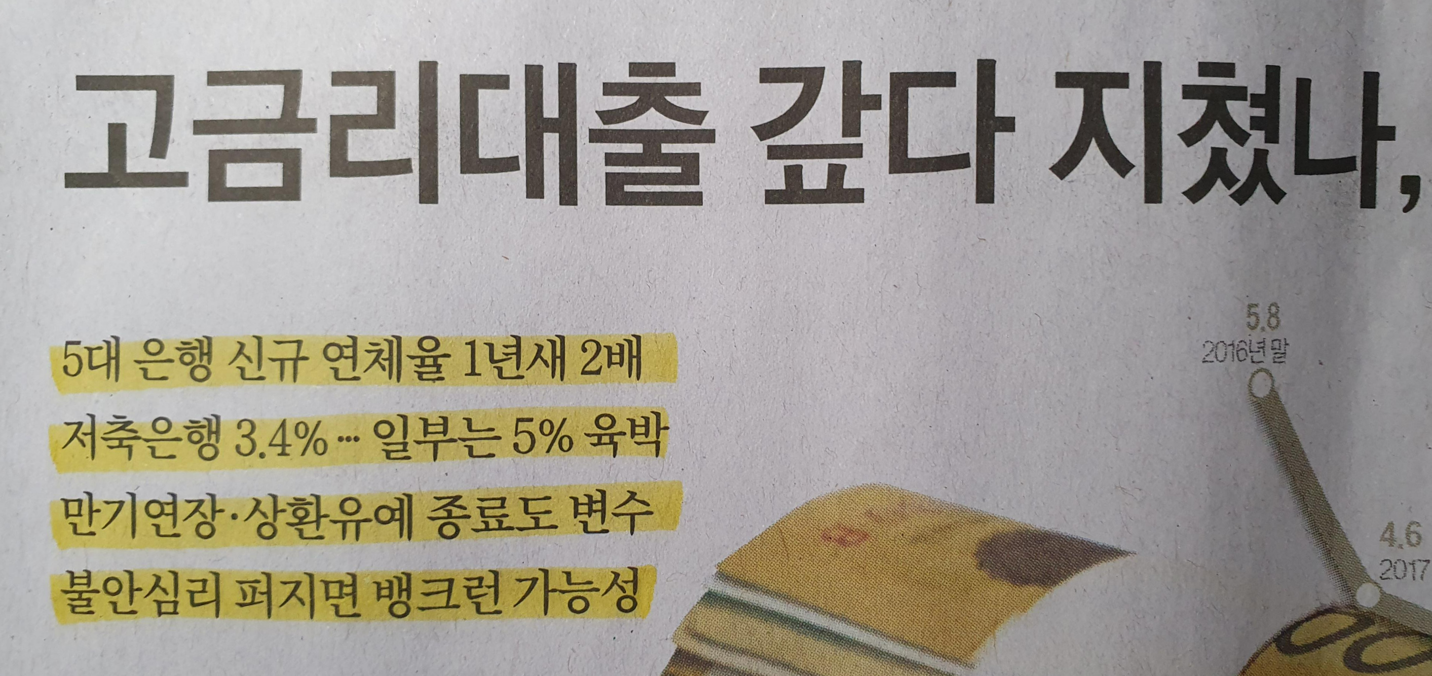-5대 은행 신규 연체율 1년새 2배, 특히 저축은행의 연체율이 높은편이다.