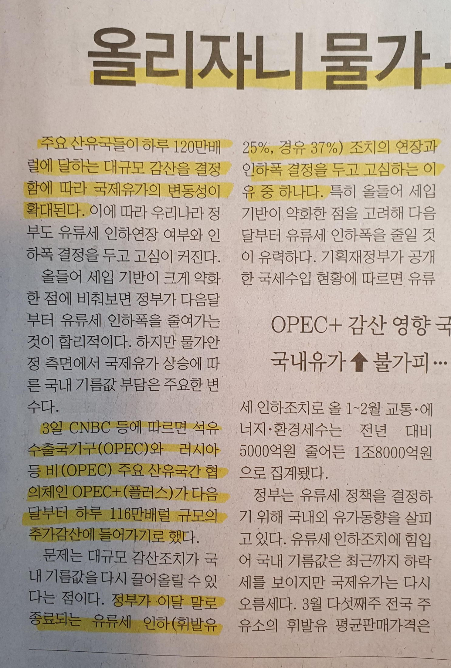 -정보는 이달말로 종료되는 유류세 인하 휘발유 25%, 경유 37% 조치의 연장과 인하폭을 두고 논의 중